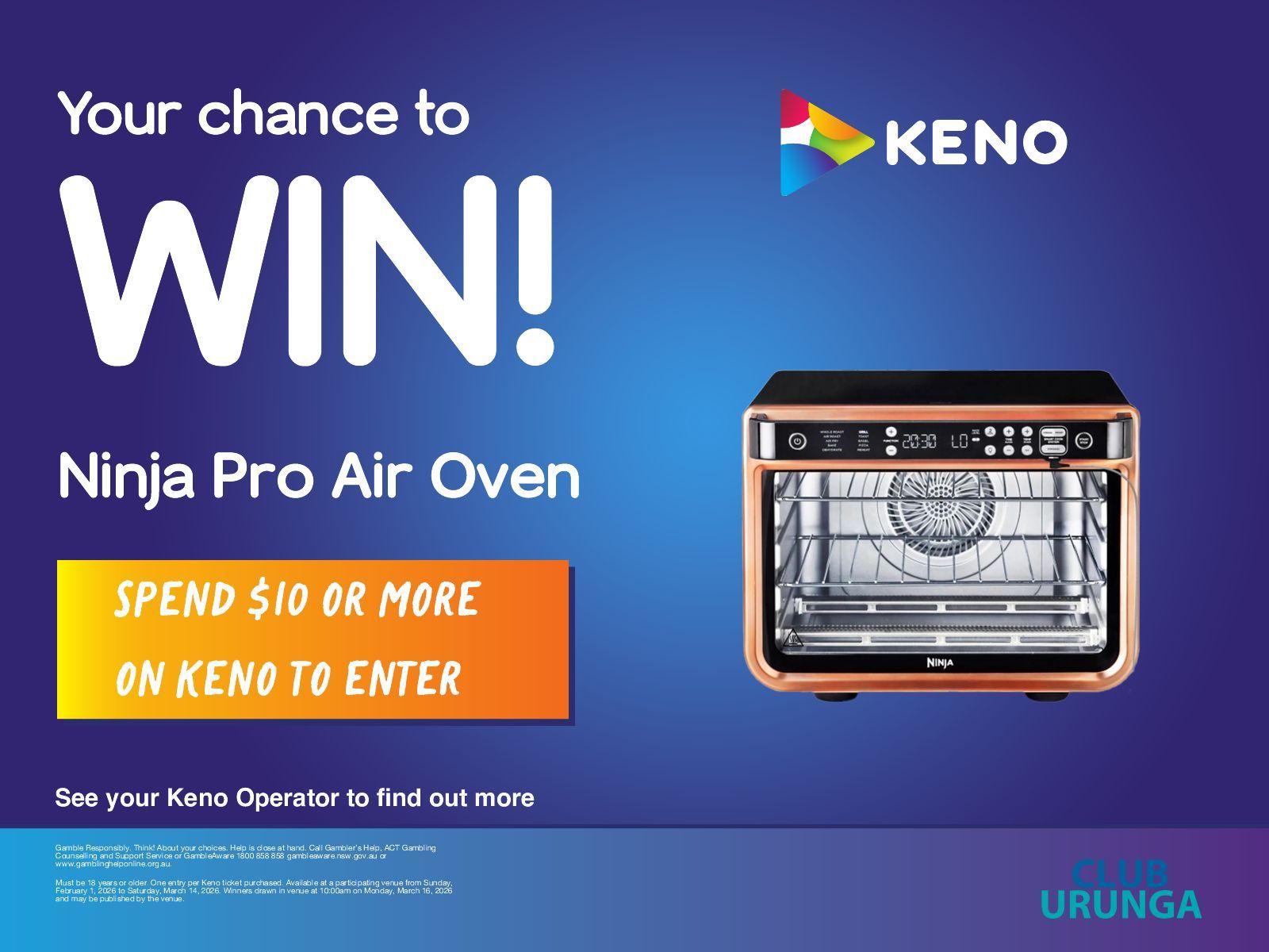 How to Enter: It’s simple! Just spend $10 or more on Keno in-venue to receive your entry.